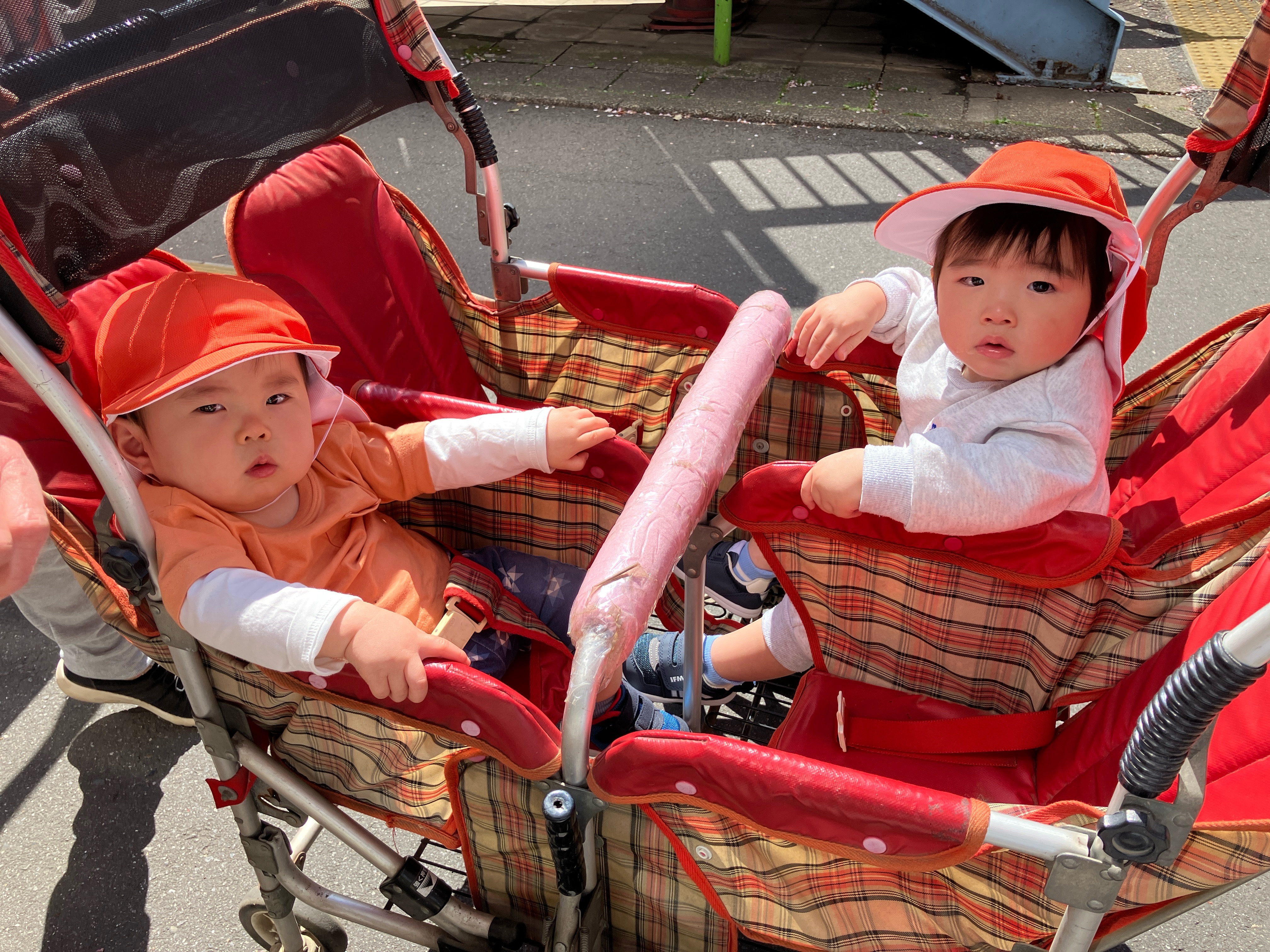 向かい合わせのバギーに乗り、桜を見てきましたよ。![]()
