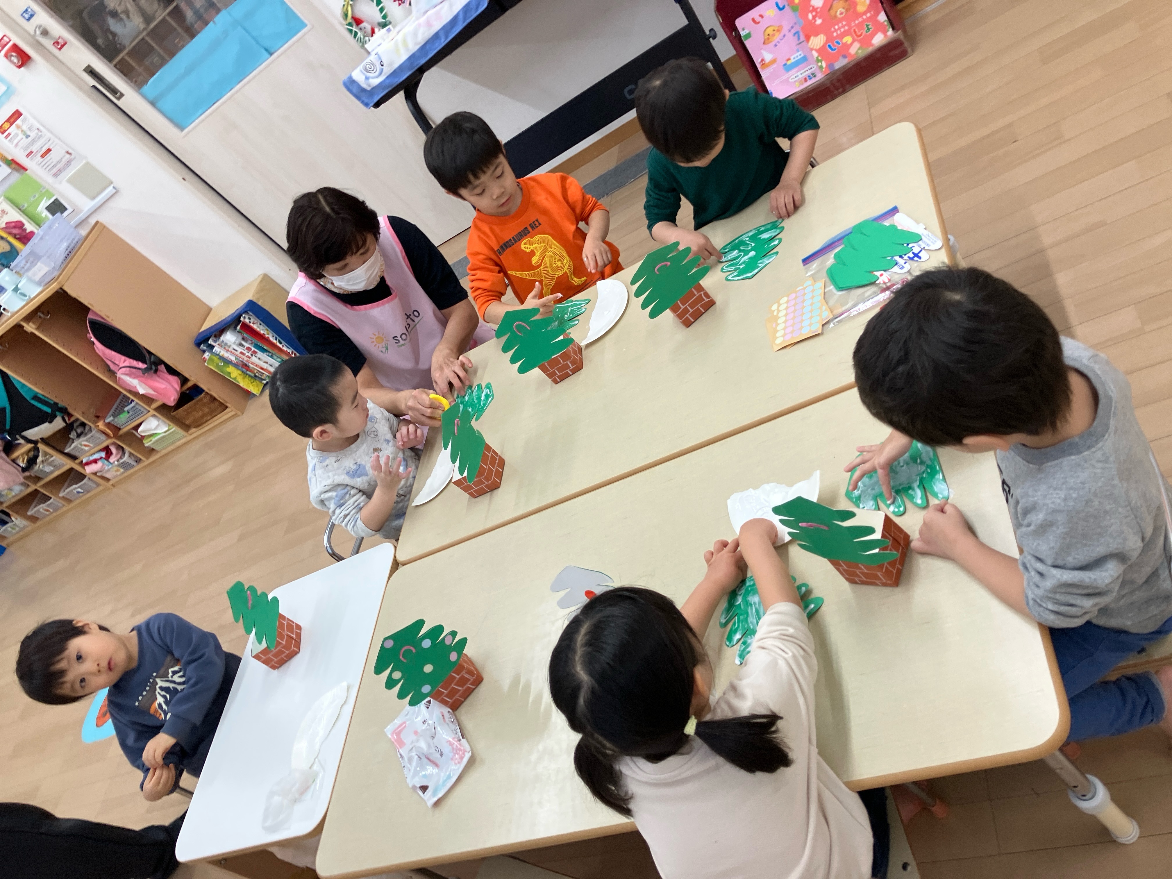 ソラスト中村橋保育園☆3歳児 クリスマスの小物入れ作り