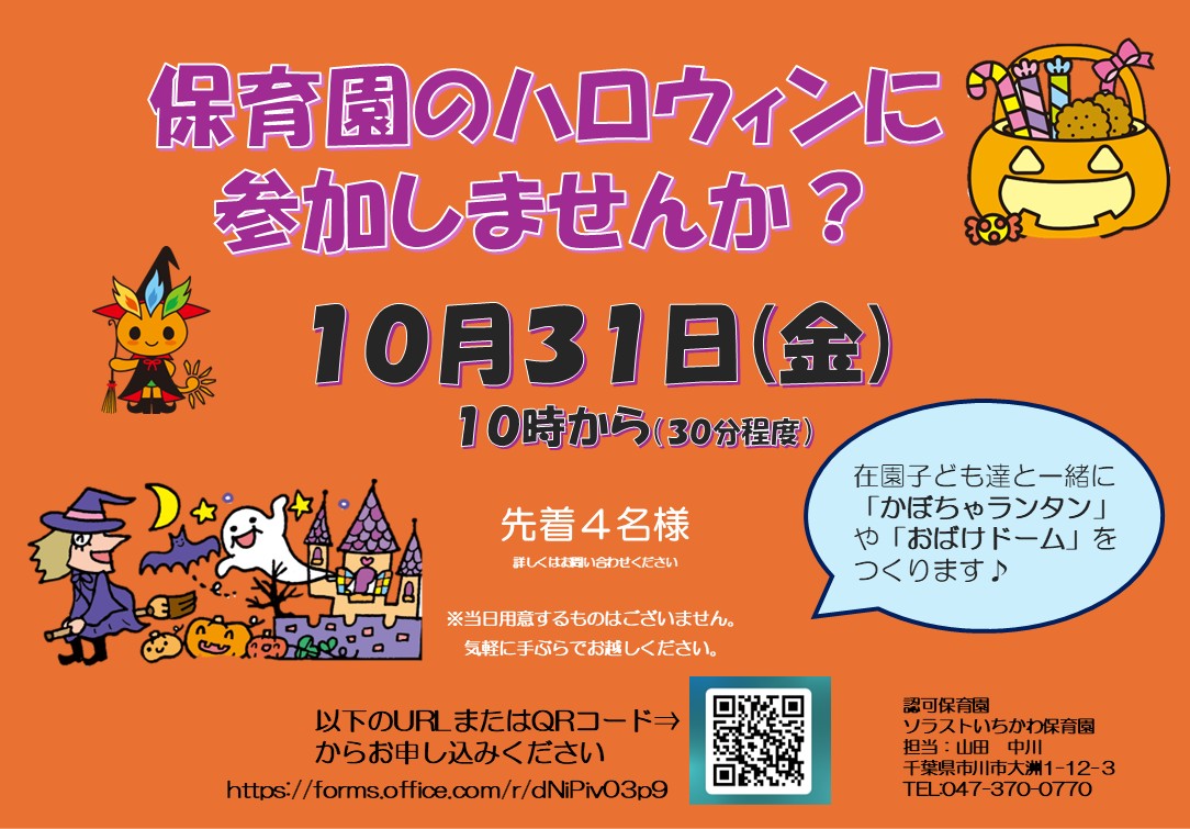 ソラストいちかわ保育園☆公開保育「保育園のハロウィンに参加しませんか?」