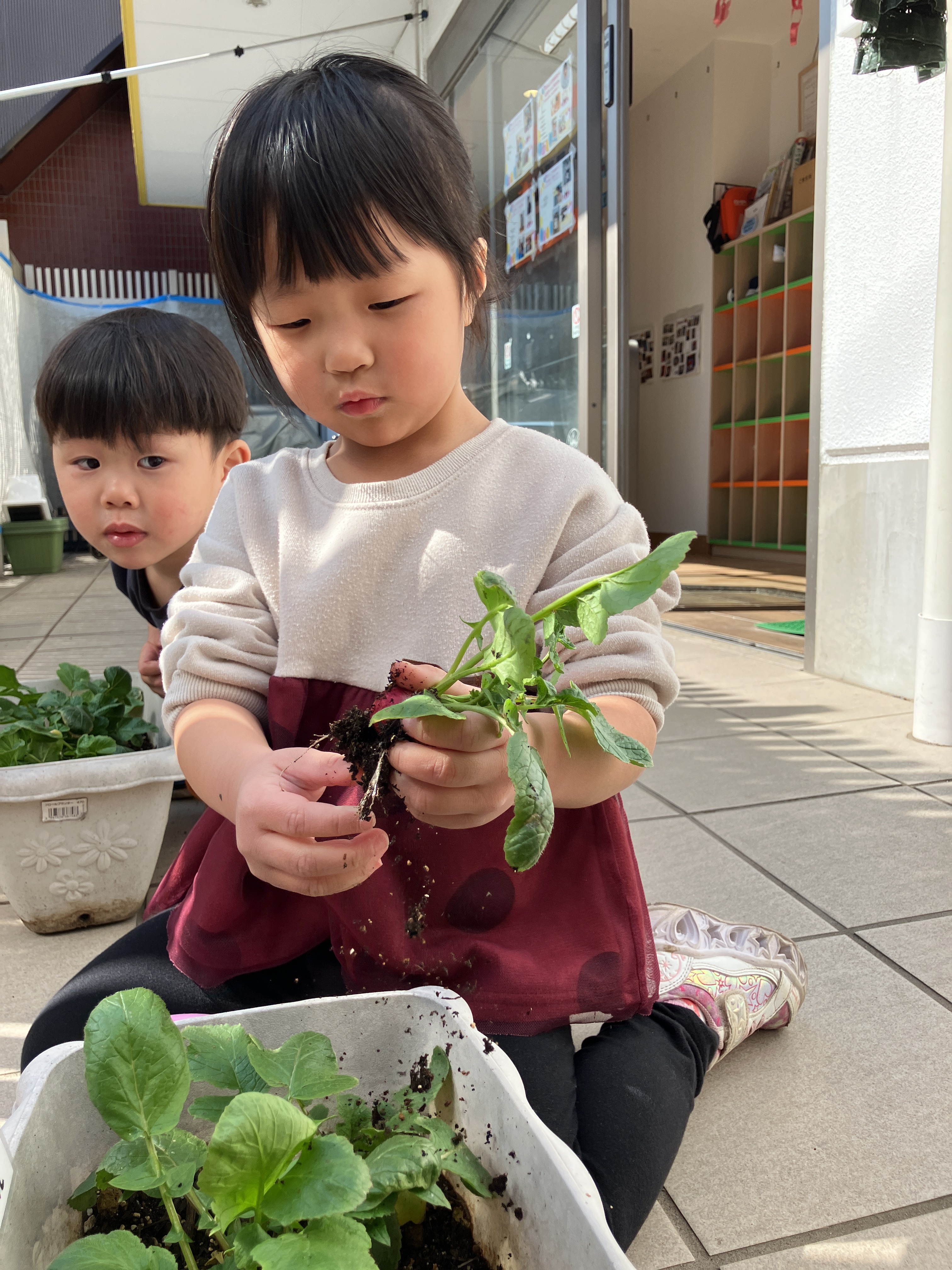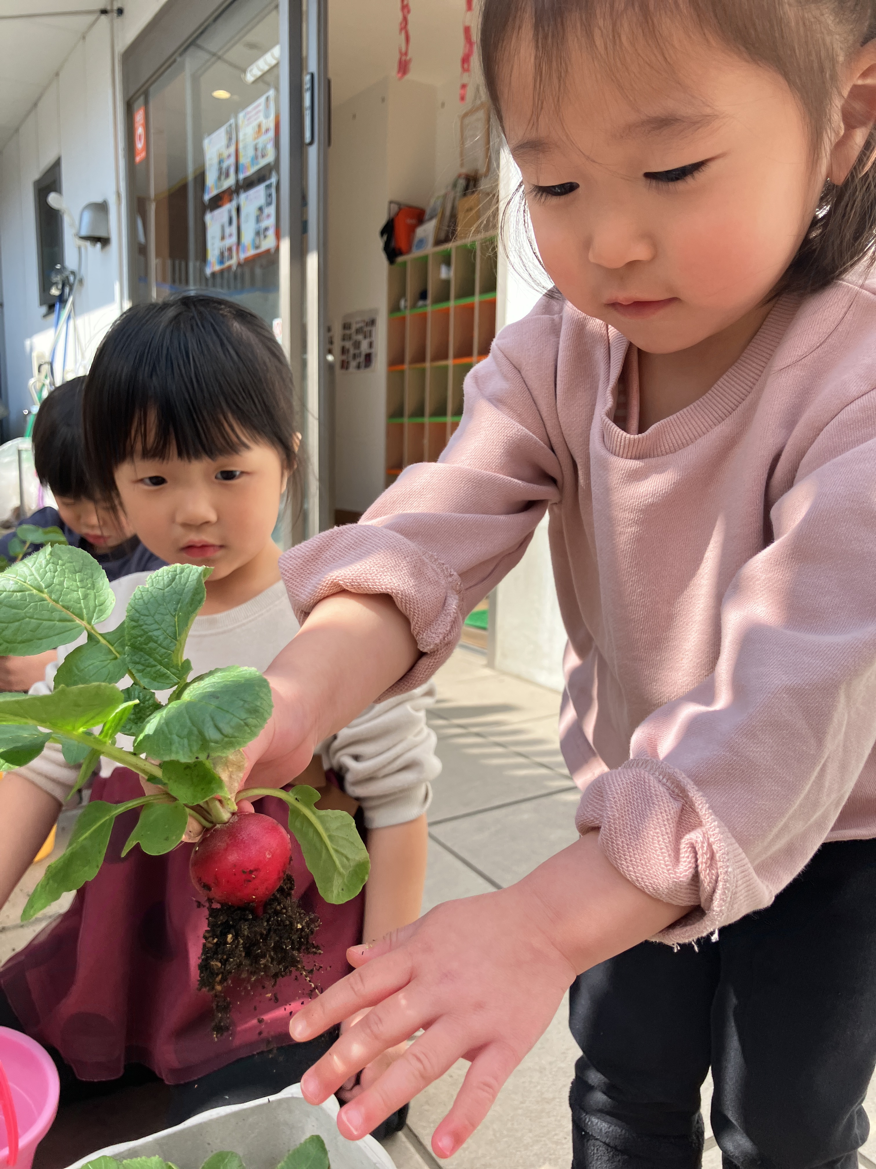ソラストうらやす保育園☆二十日大根の収穫