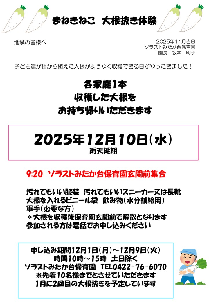 お待たせいたしました!!大根抜き体験の日程が決まりましたのでお知らせします